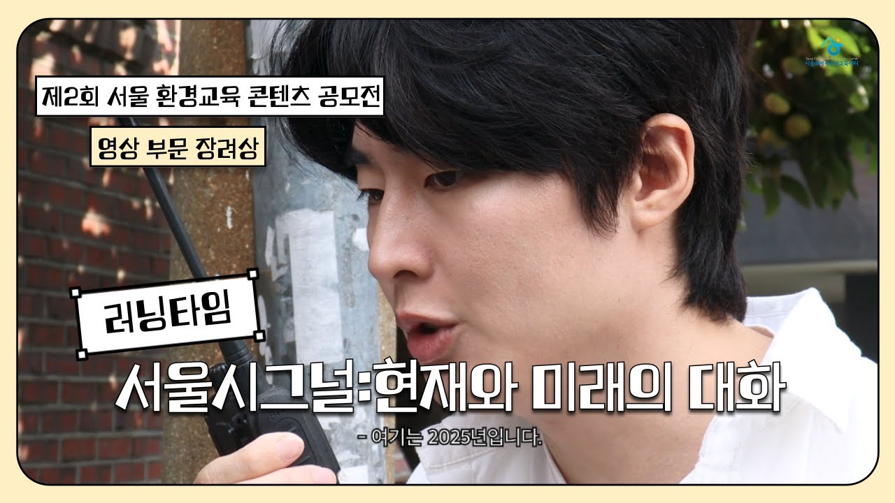 「2025년 제2회 서울특별시 환경교육 콘텐츠 공모전」 영상 부문 수상작○ 시상명 : 장려상(서울특별시환경교육센터장상) 수상작○ 작품명 : 서울시그널 : 현재와 미래의 대화○ 팀 명 : 러닝타임(문예원, 유우영, …
